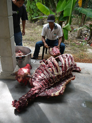 Keesokan harinya adalah hari merewang-rewang. Orang kampung da datang merewang time tu. Kupas-kupas, potong-potong, cuci-cuci, gosip-gosip..eh..